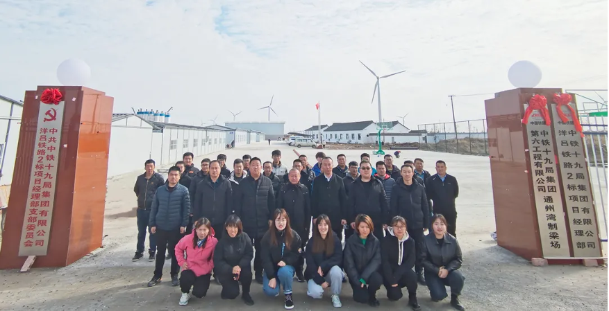 2022年1月1日,新年伊始,萬象更新。上午10時16分,伴隨著陣陣鞭炮聲,洋呂鐵路2標(biāo)項(xiàng)目經(jīng)理部、通州灣制梁場揭牌儀式順利舉行。